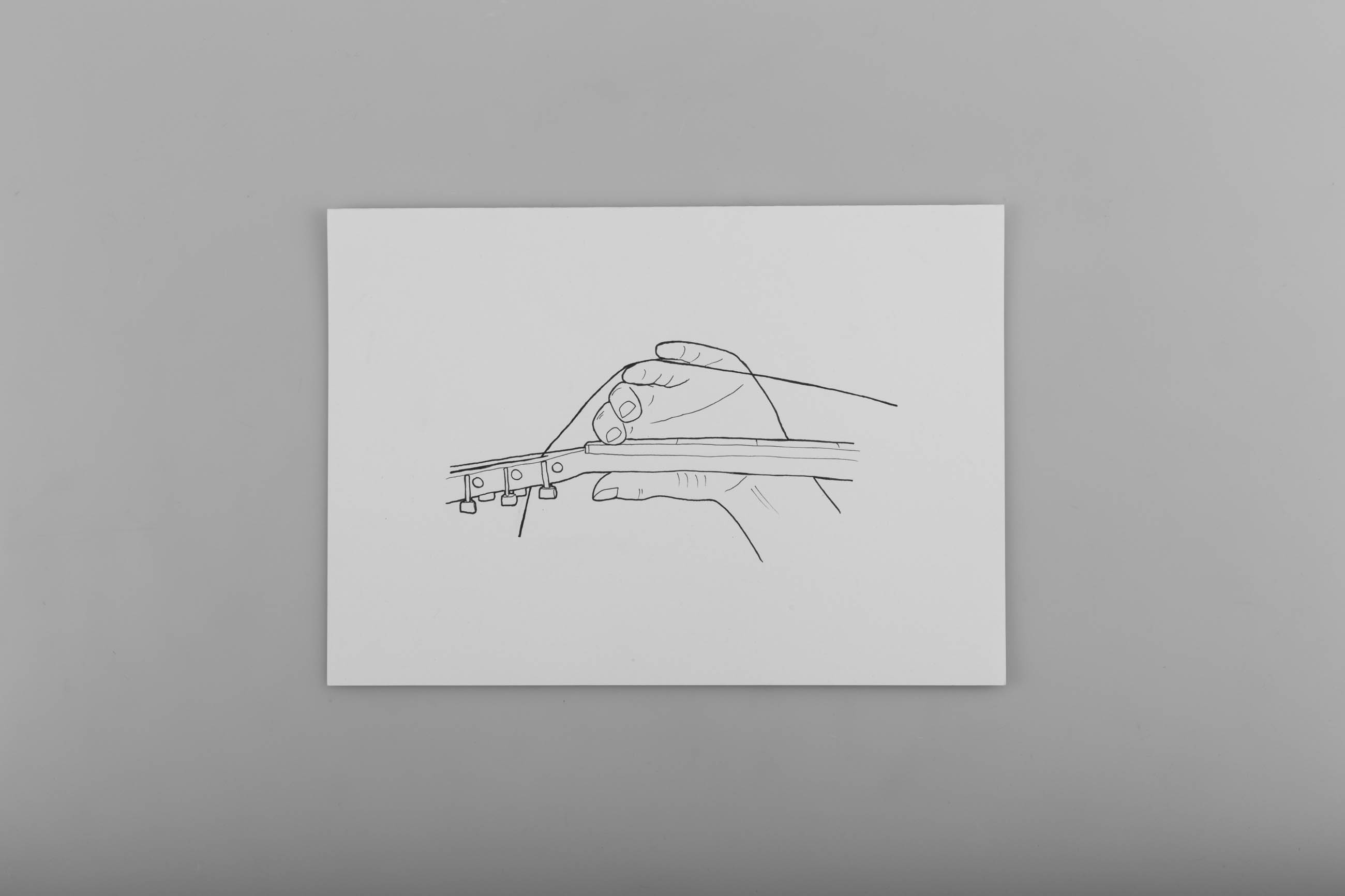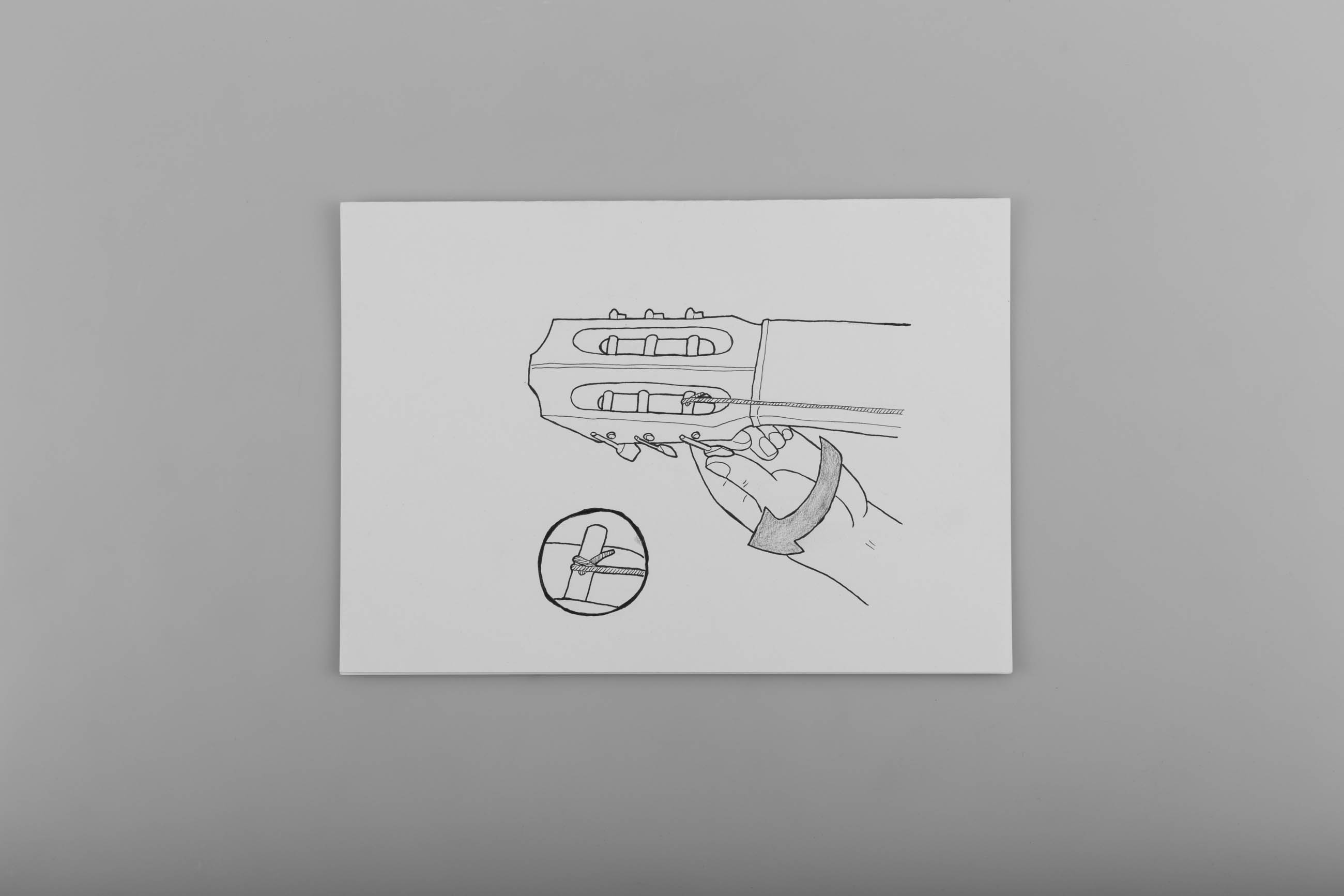 Task: Find any activity and draw an instruction for it. This should consist of 6 to 10 steps and show objects, hands and maybe arrows et cetera. I went for an instruction on restringing a guitar which I wanted to learn properly anyway and this seemed to be a perfect opportunity. At first I watched a lot of video tutorials, but soon found out that there were a thousand different possible approaches. I then decided to ask a friend, who is a great guitar player, if he could help me out and then simply stuck to his explanation in my instruction (or at least to how I understood it. I hope I got it right).